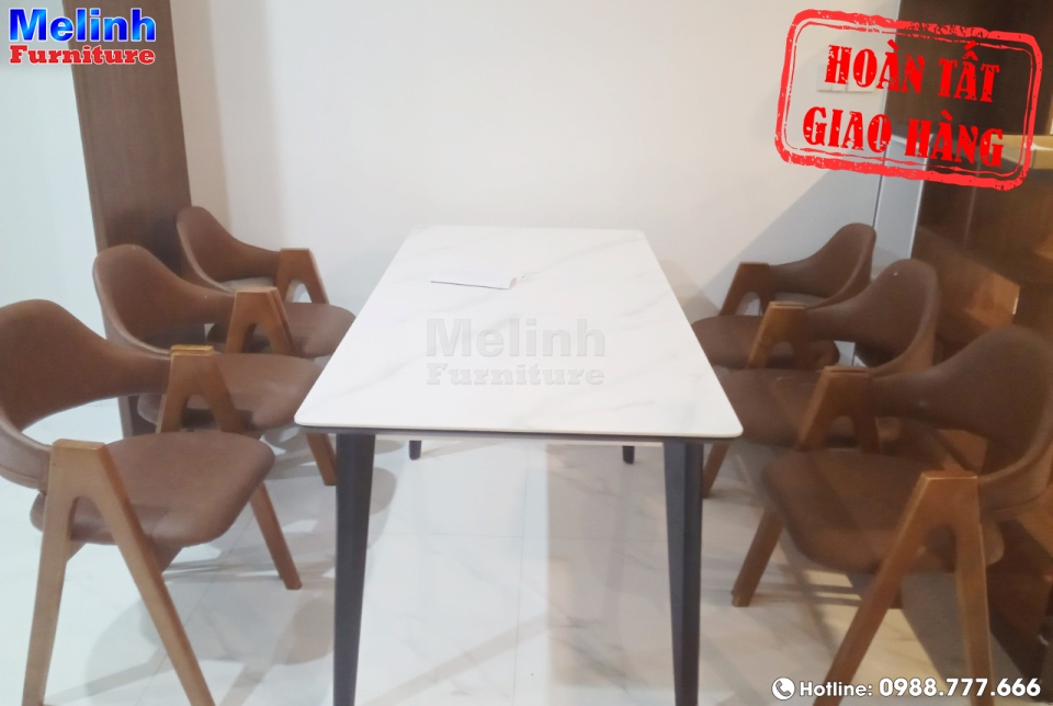 Thật khó cưỡng lại vẻ đẹp tinh tế, thanh lịch của bộ bàn ăn mặt đá Ceramic & bộ Sofa da thật nhập khẩu được Nội thất Mê Linh bàn giao đến nhà khách hàng.