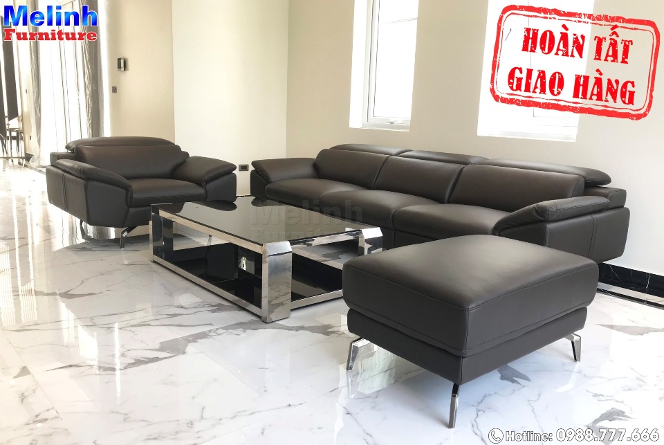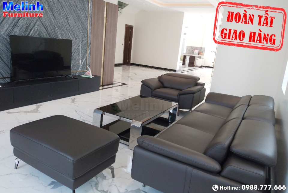 Bộ sofa tông đen nổi bật trong không gian nội thất lịch lãm sang trọng phù hợp với thiết kế tổng thể phòng khách