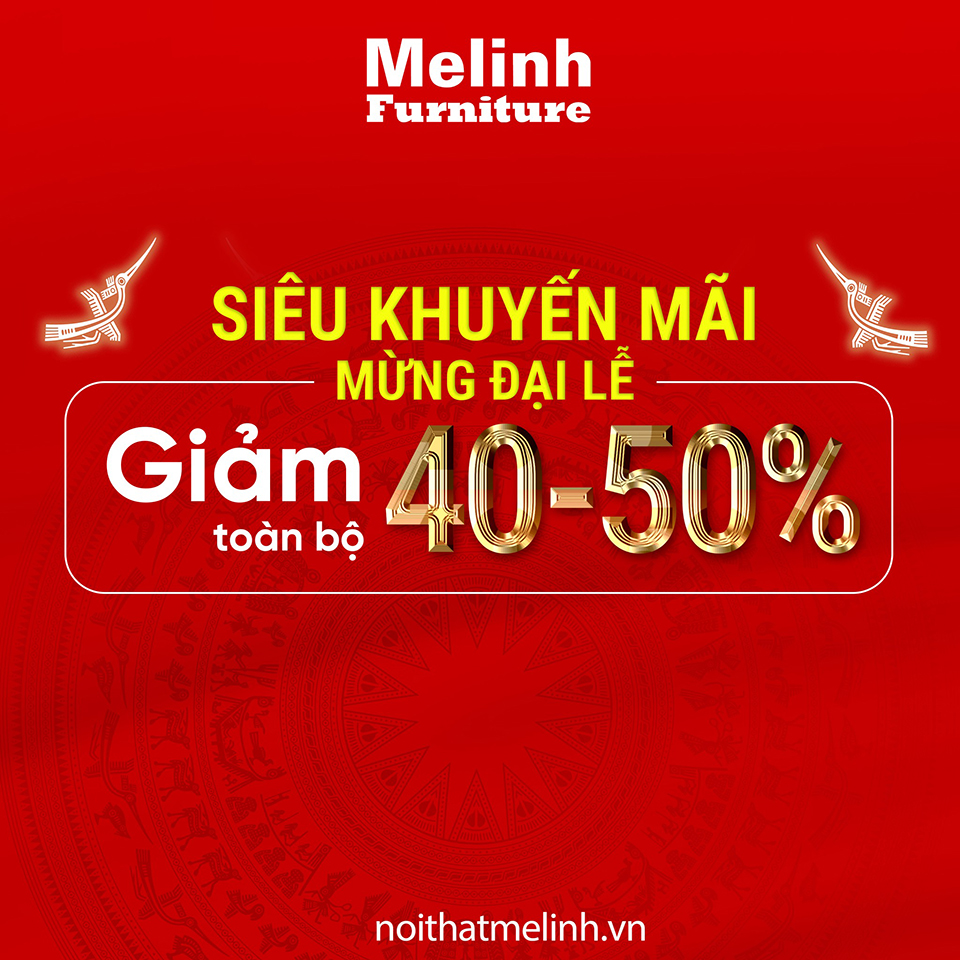 Mừng Đại lễ ngày Giải phóng miền Nam 30/4 và Quốc tế Lao Động 1/5, Nội thất Mê Linh gửi đến tất cả các khách hàng chương trình khuyến mãi: “SIÊU KHUYẾN MÃI – MỪNG ĐẠI LỄ” với ưu đãi hấp dẫn giảm toàn bộ 40-50% như một lời tri ân sâu sắc gửi đến những khách hàng đã luôn tin tưởng và sử dụng dịch vụ của chúng tôi trong suốt thời gian qua.
